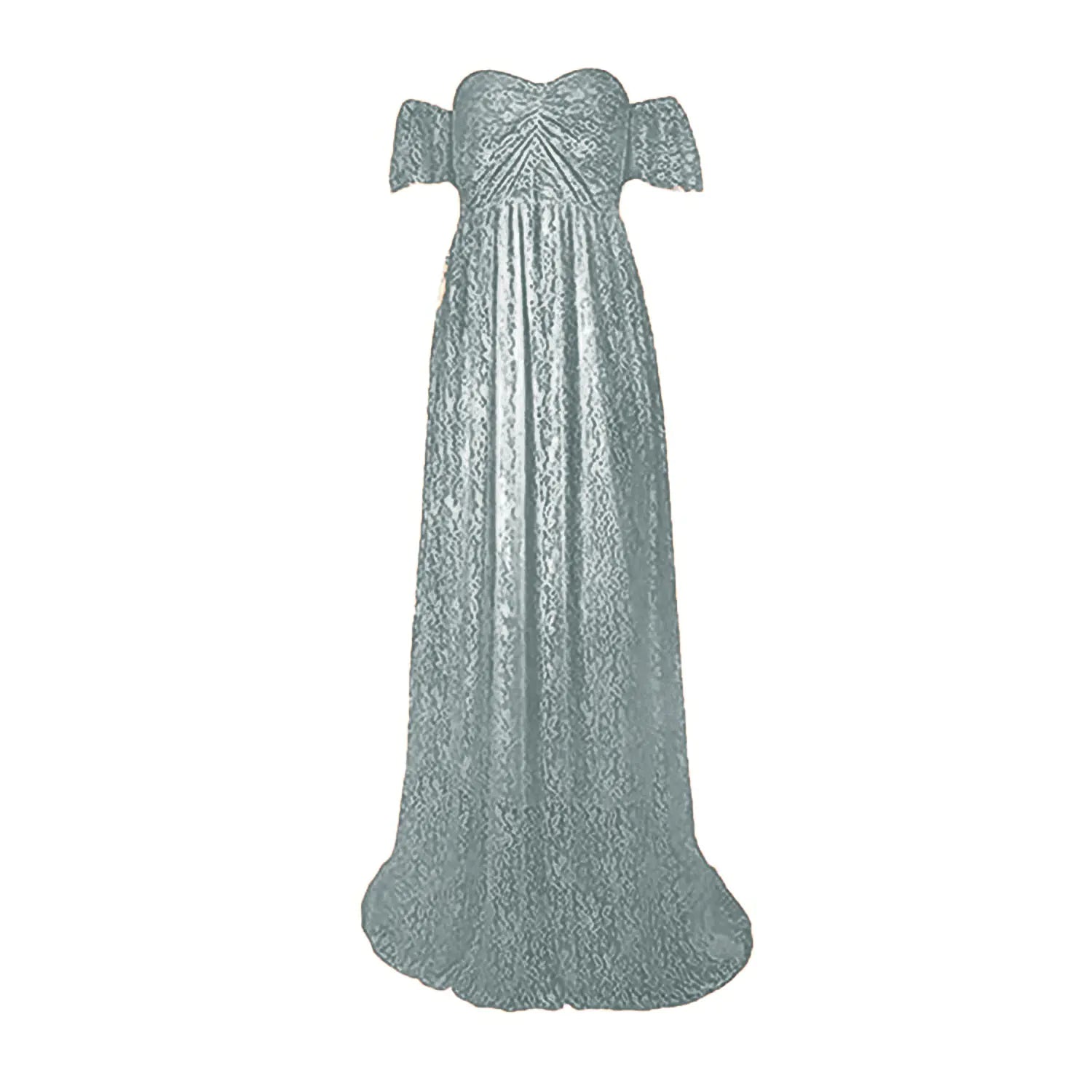 Introducing our stunning lace maternity gown designed for the modern mother-to-be. This exquisite dress features a delicate lace fabric, primarily composed of polyester fiber, ensuring both comfort and elegance during this special time in your life. The ruffled skirt adds a touch of charm and femininity, making it perfect for photography sessions, baby showers, or any special occasion.